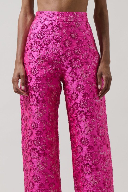 Conjunto de jacquard fucsia estampado 3D floral brillante.